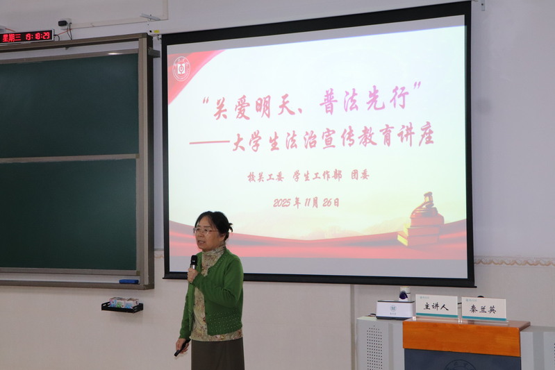 为强化大学生法治观念,提升法治素养与自我保护能力,11月26日晚,校关工委、学生工作部、团委联合举办“关爱明天、普法先行”大学生法治宣传教育讲座。本次讲座特邀校关工委副主任秦兰英副教授担任主讲人,140名学生现场参与学习交流。